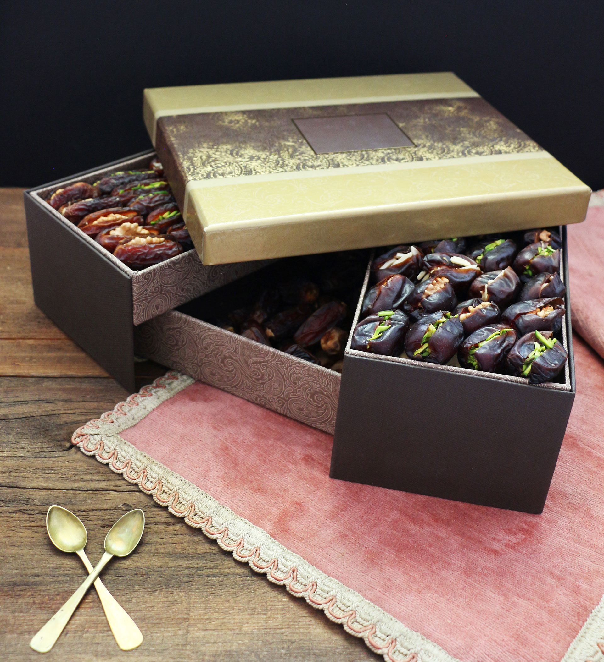 AriafoodsLuxurious Services are designed so that the customer can receive dates differently. In this section, AriaFoods offers the date to the customer in special ways, which is include stuffed dates, chocolate dates, and luxurious packaging. As you know Dates have a lot of nutrients, so there is no need to emphasize how good they are for the body especially when they are mixed with other nuts.